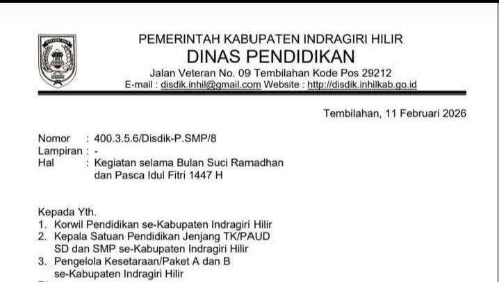Tembilahan, detikriau.id/ – Dinas Pendidikan (Disdik) Kabupaten Indragiri Hilir resmi mengatur pelaksanaan kegiatan pembelajaran...
