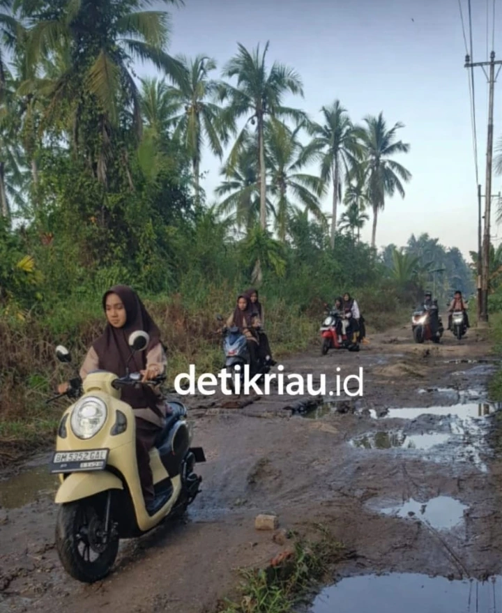 detikriau.id/ – Pagi belum sepenuhnya hangat ketika deru sepeda motor dan langkah kaki pelajar memecah sunyi di Jalan Merdeka Parit 4 Kelurahan Teluk Pinang. Jalan tanah itu tampak basah, berlubang, dan tergenang air di banyak titik. Di sinilah setiap hari anak-anak sekolah, guru, dan warga mempertaruhkan keselamatan demi sampai ke tujuan.